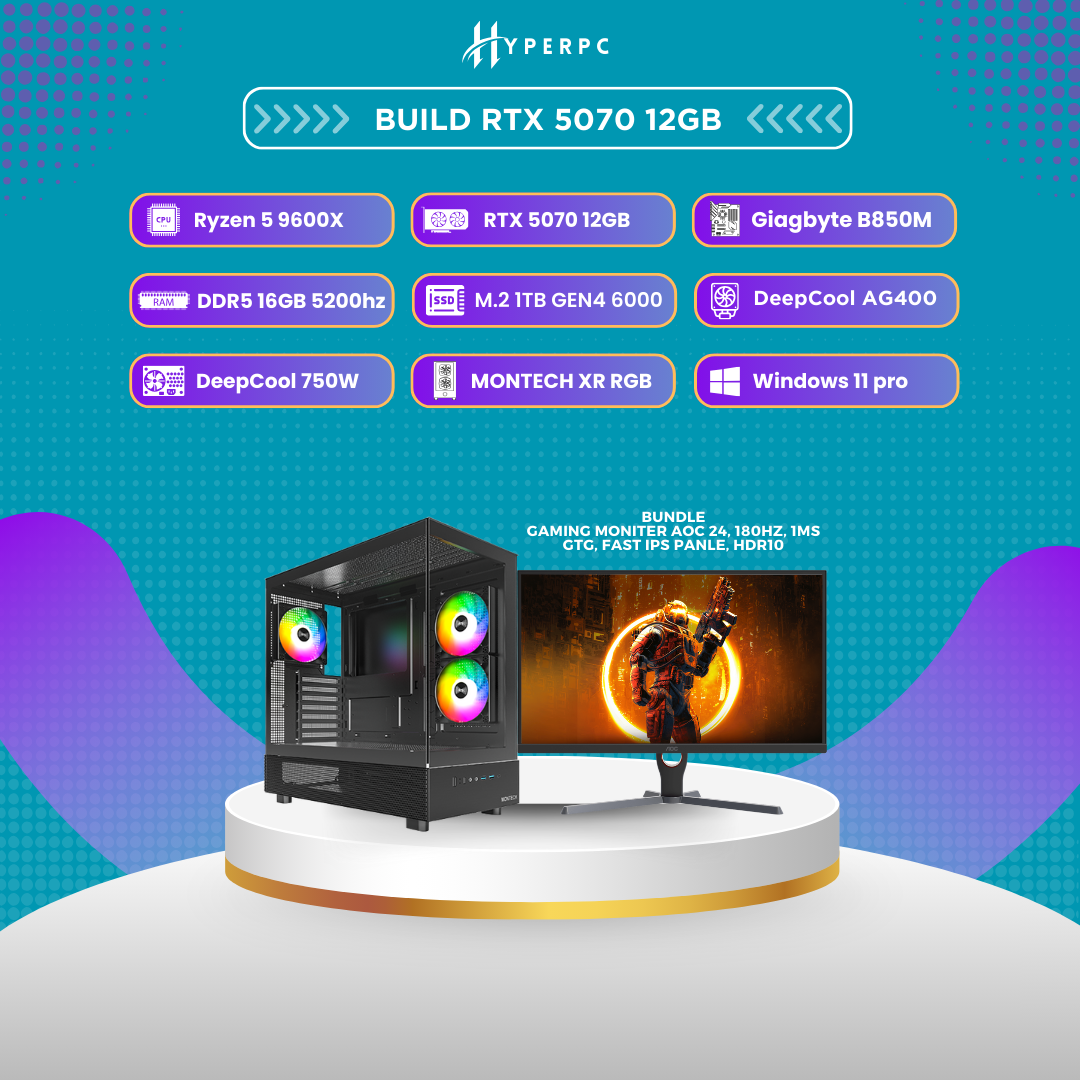 yper build Ryzen 5 9600X – RTX 5070 12GB + Gaming Monitor AOC